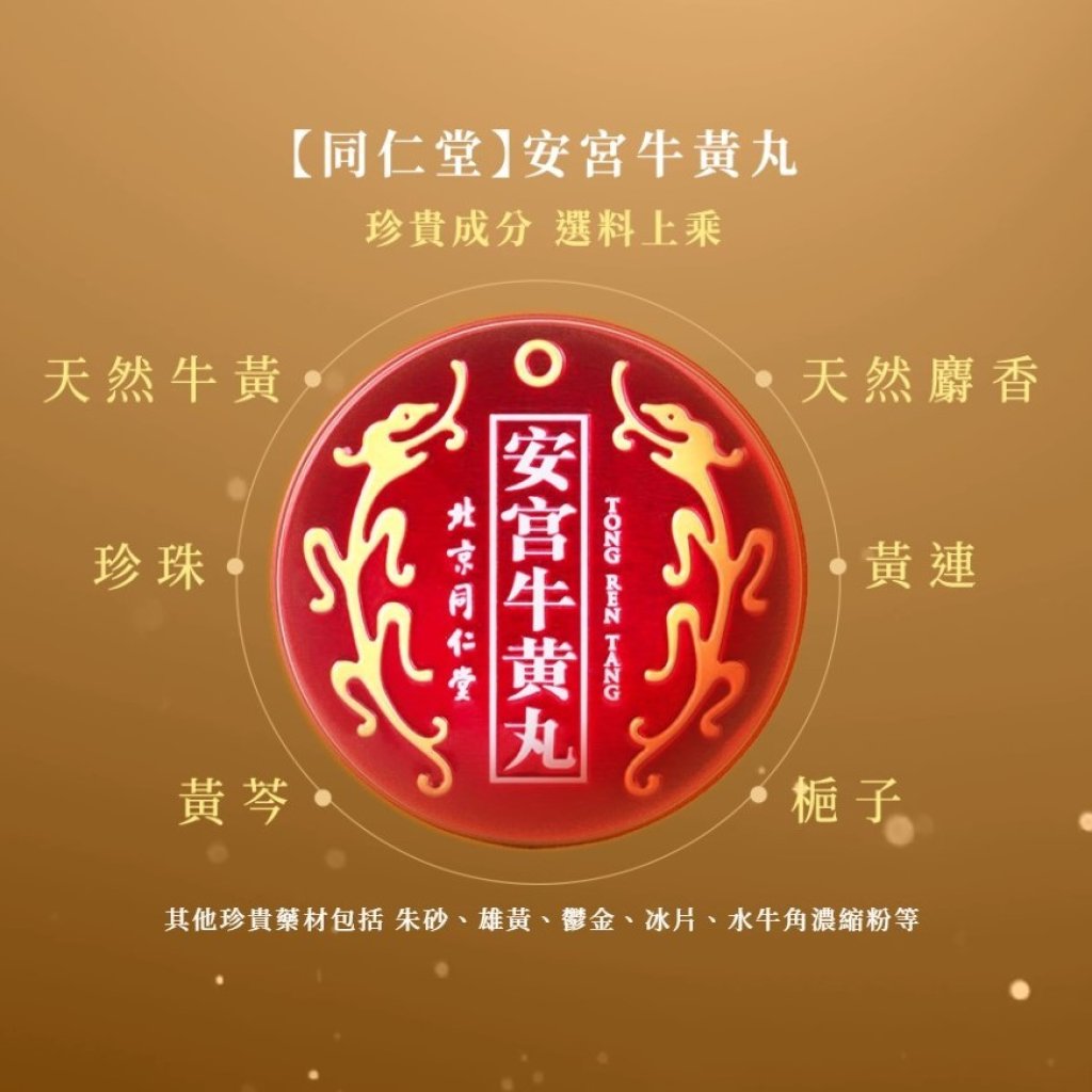 【同仁堂】安宮牛黃丸依照清代著名溫病學家吳鞠通《溫病條辨》之古方,配合同仁堂精良炮製方法,產品專門應對突發的心腦血管健康問題,傳承至今,造福多代廣大民眾。 有清熱解毒,鎮驚開竅的功效。用於熱病,邪入心包,高熱驚厥,神昏譫語。
