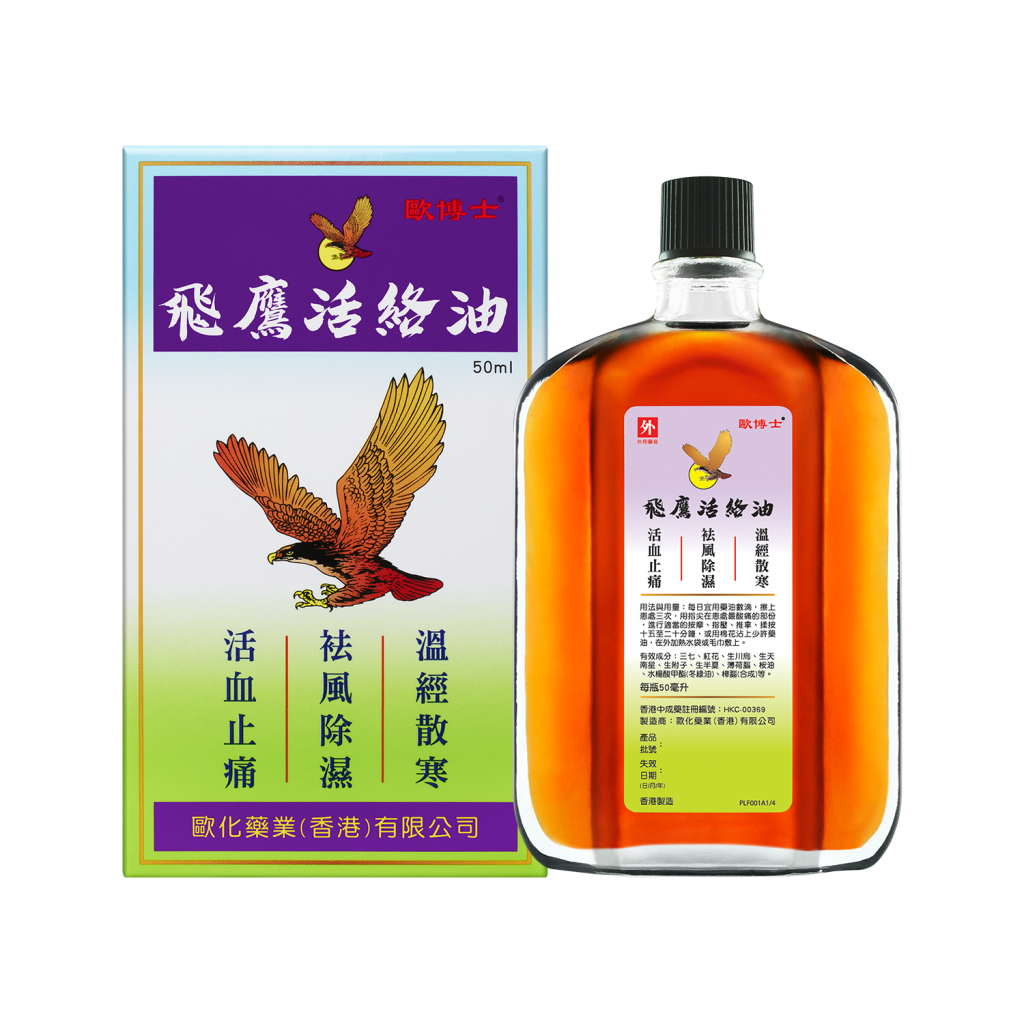 飛鷹活絡油是一款抗風濕的中成藥油,含水楊酸甲酯、薄荷腦、天然中草藥如三七、紅花、生川烏等成份起到疏通經絡,促進氣血運行作用,有效舒緩風濕關節及運動相關的肌肉酸痛、疼痛、跌打損傷及腫痛;由香港GMP中 成藥廠生產、通過認證的實驗室檢測,產品符合香港衛生署規格,品質及安全性有保證。