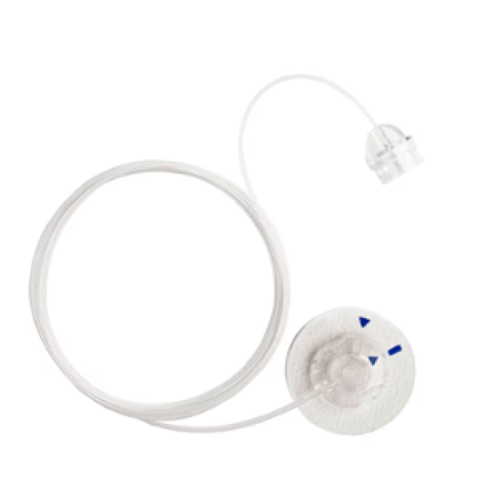 MiniMed™ Quick-set™ 輸注管路可在輸注部位輕鬆斷開,並附有預黏式黏貼膠,設計低調且輪廓低。